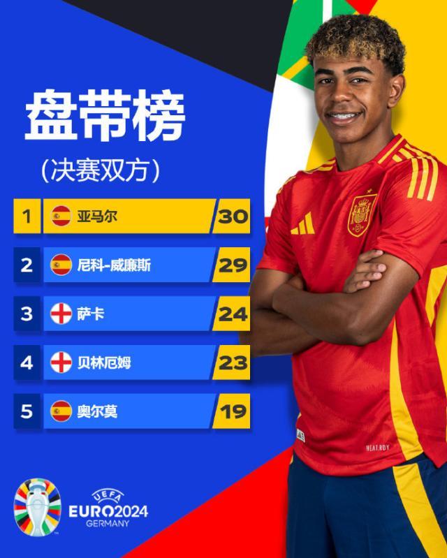 【4】亚马尔小组赛、1/8决赛、1/4决赛、决赛4次助攻;英格兰淘汰赛连续4场先丢球。
